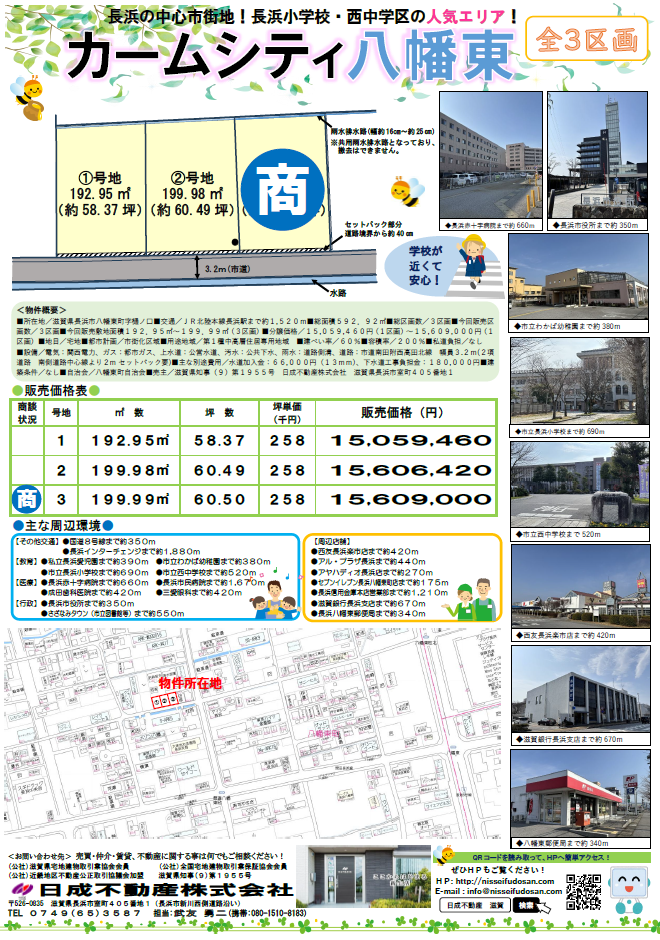 新規分譲宅地「カームシティ八幡東」販売開始いたしました!new 物件の詳細を見る 価格 売地 坪単価25.8万円 所在地 滋賀県長浜市 八幡東町 交通 JR北陸本線長浜駅 徒歩1520m 面積 物件番号