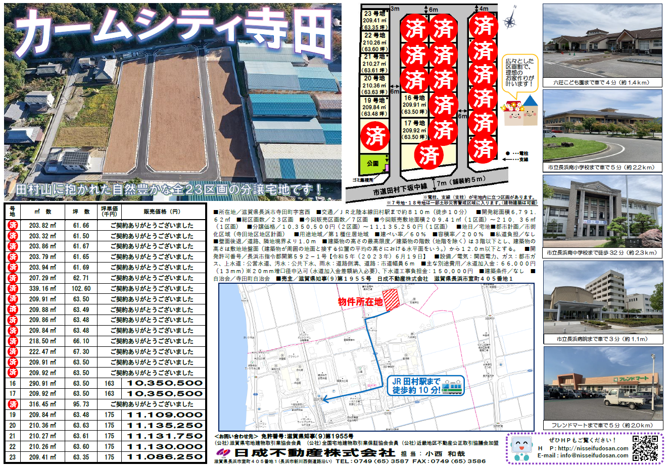 新規分譲宅地「カームシティ八幡東」販売開始いたしました!new 物件の詳細を見る 価格 売地 坪単価25.8万円 所在地 滋賀県長浜市 八幡東町 交通 JR北陸本線長浜駅 徒歩1520m 面積 物件番号