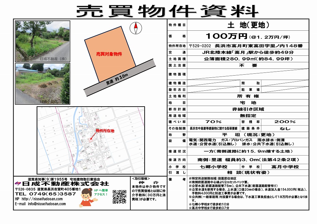 長浜市高月町東高田 土地 ※価格変更up 100万円 280.99m² 物件の詳細を見る 価格 100万円 売地 坪単価1.2万円 所在地 滋賀県長浜市 高月町東高田 交通 JR北陸本線高月駅 徒歩49分 面積 土地 280.99m² 物件番号