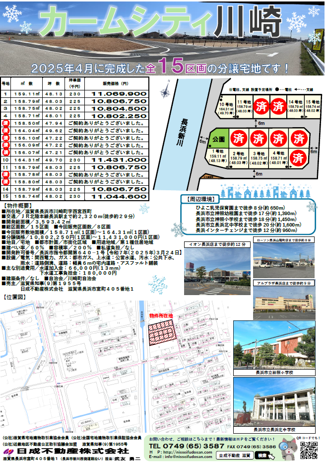 2025年4月、長浜新川東沿いに弊社分譲宅地「カームシティ川崎」が完成いたしました!完成前から多数のお問い合わせ、ご契約をいただいております!