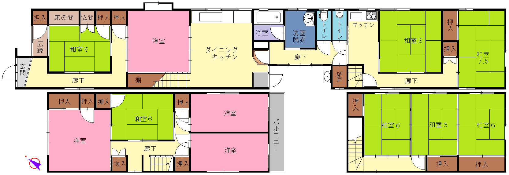 | 間取内容 | 北側、南側建物合わせて11DKK |